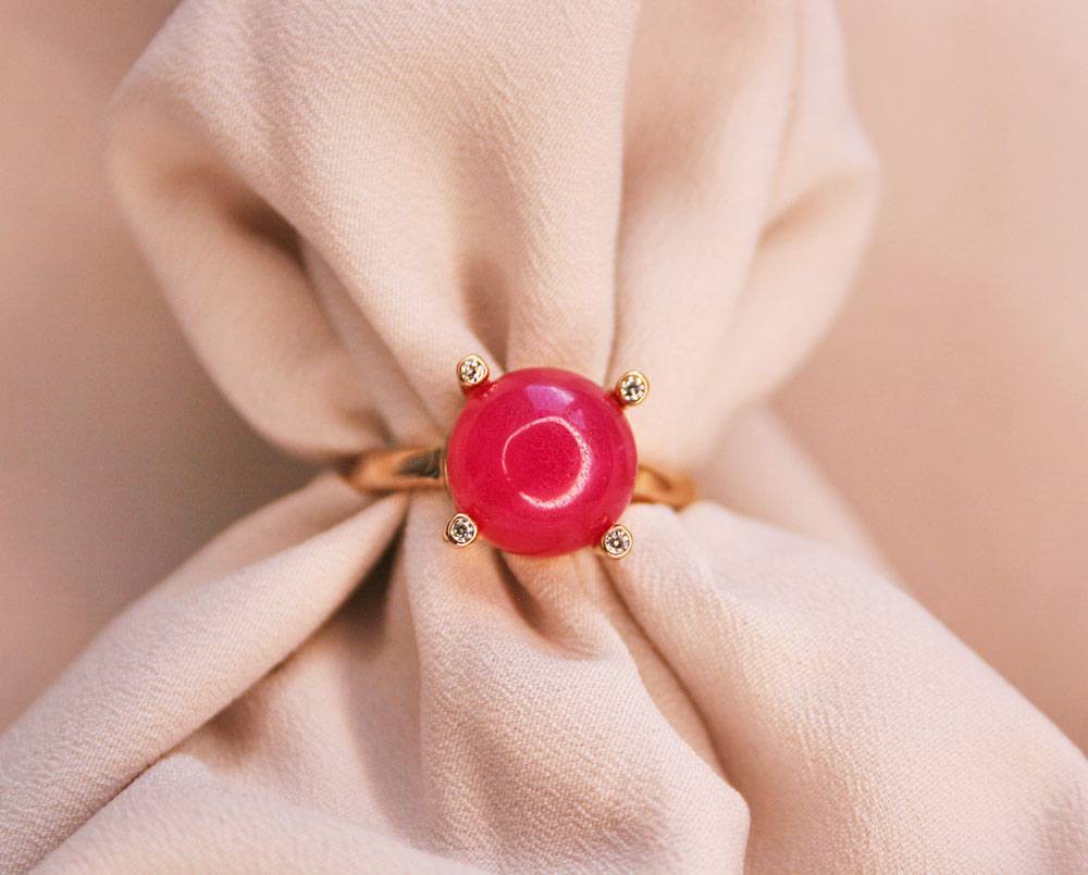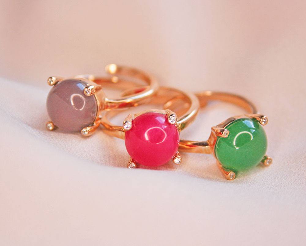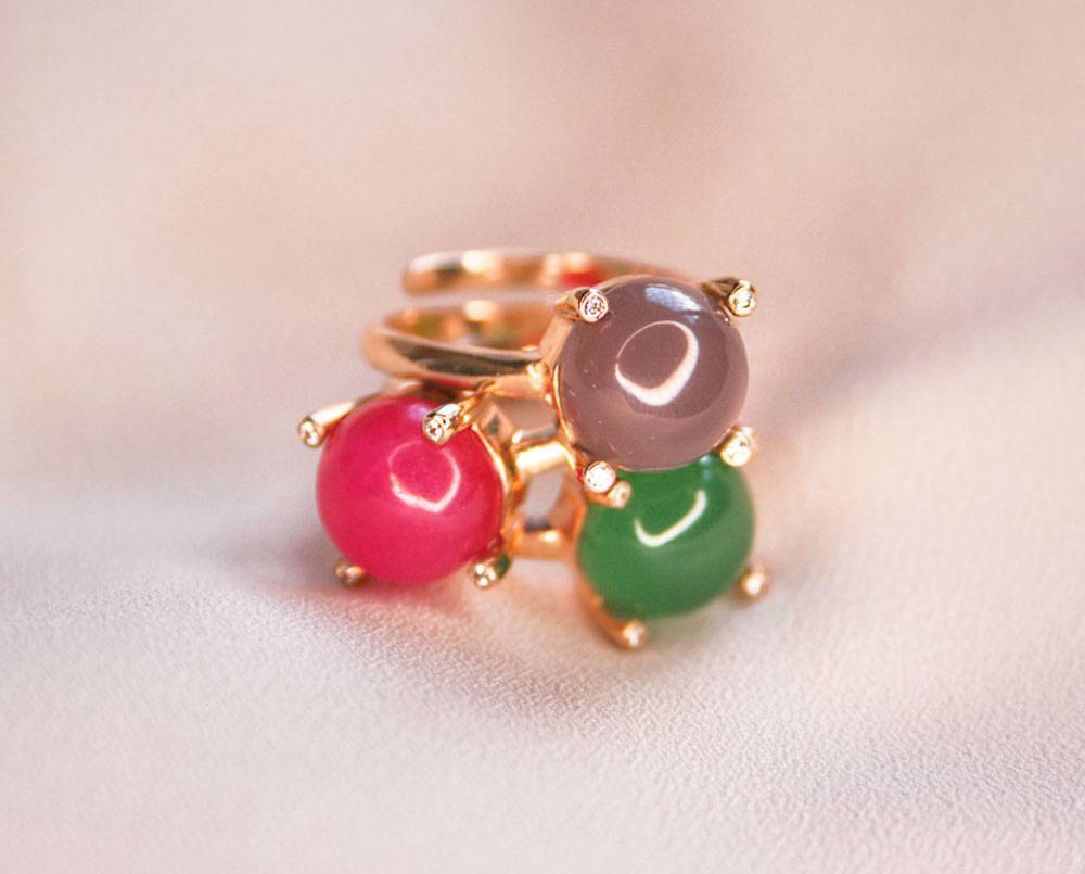 Destaca por una piedra mineral central, sujeta por 4 grapas con circonitas, que puedes escoger en 3 colores diferentes.