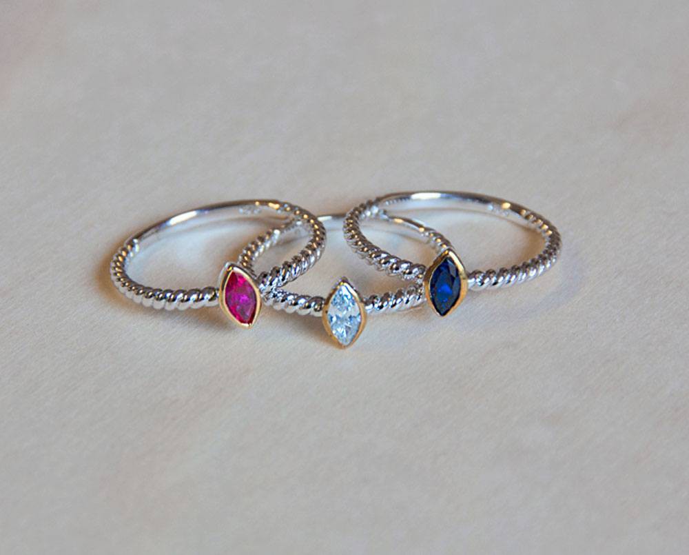 El anillo Yalitza es una joya única que puedes personalizar escogiendo el color de la circonita central.