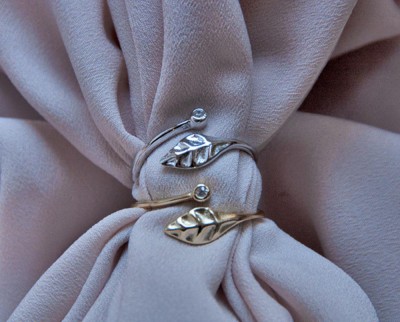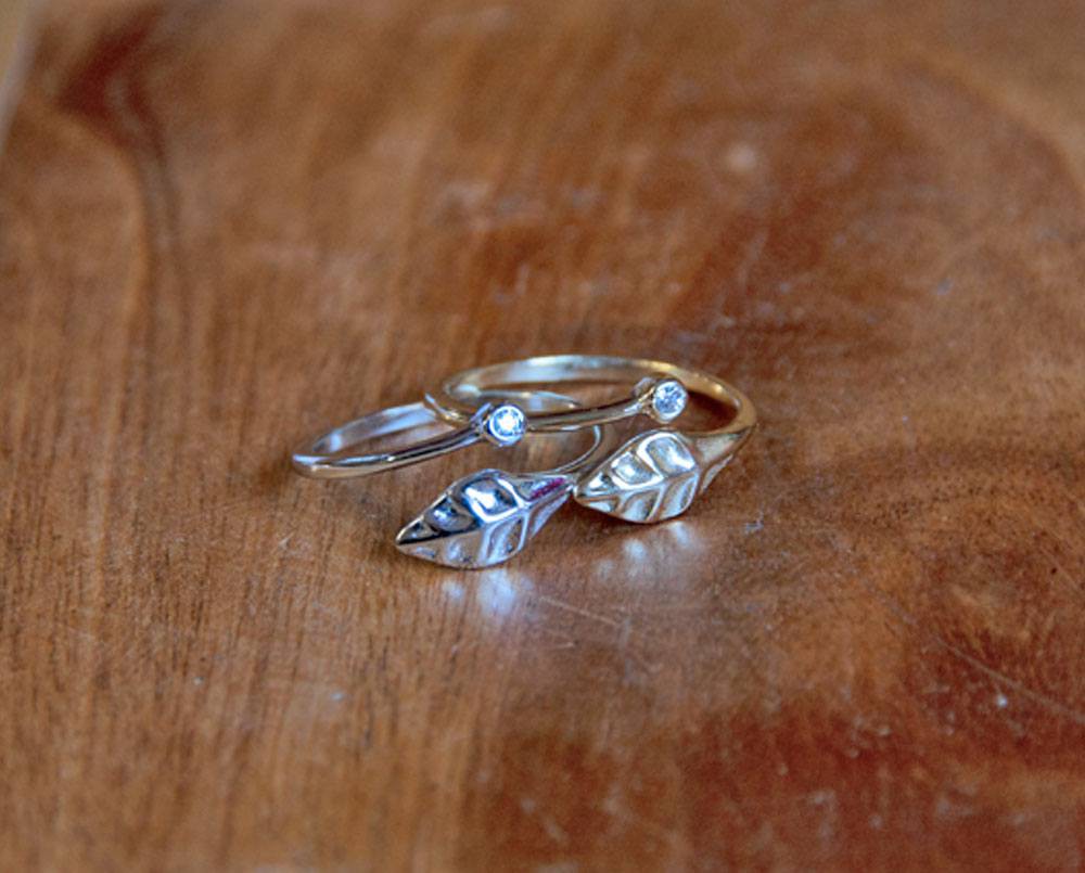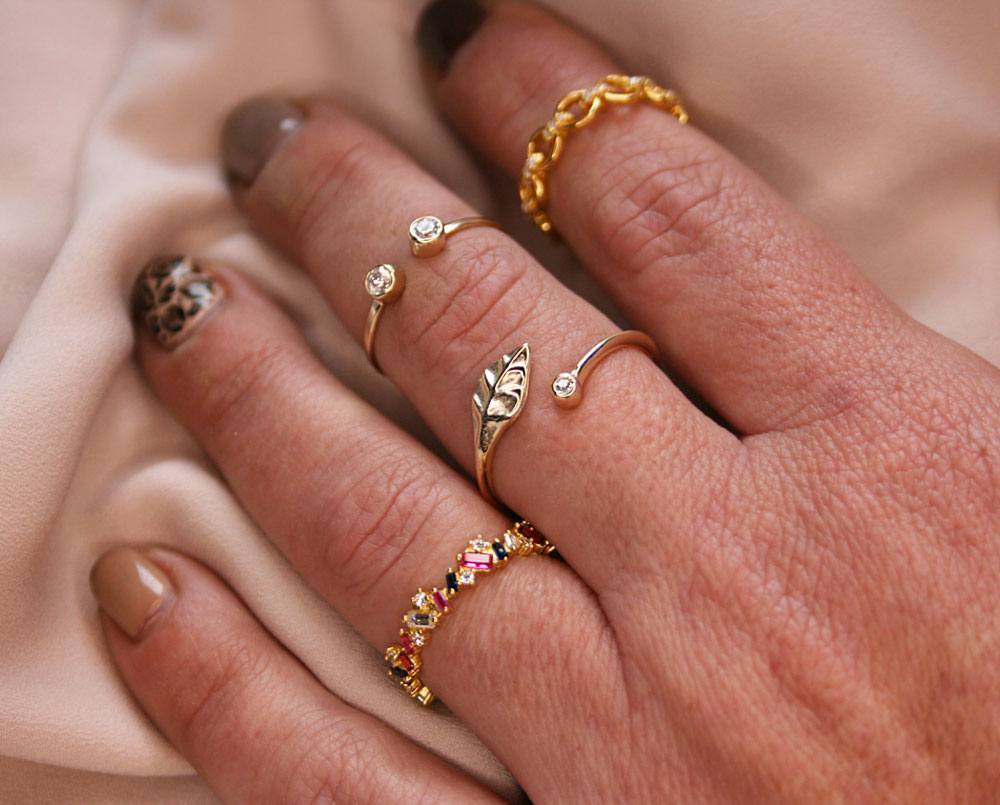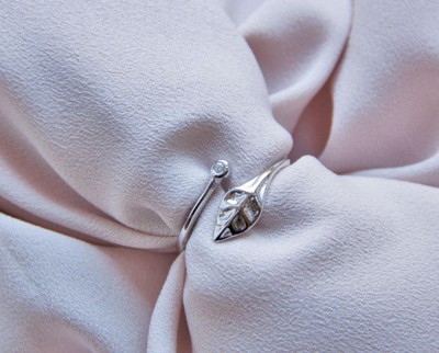 Tu dedo queda abrazado por una circonita y una hoja