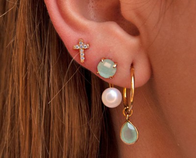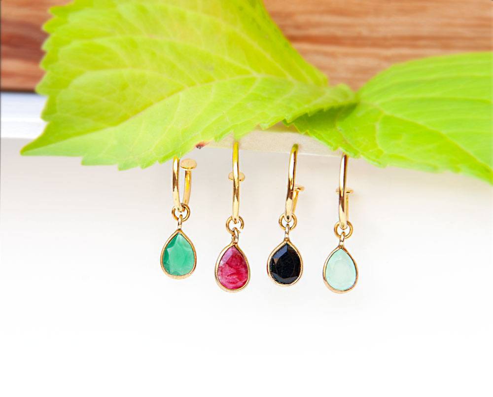 Es un pendiente personalizable pues puedes elegir el diámetro de la criolla, el baño de la Plata y el color de la piedra.